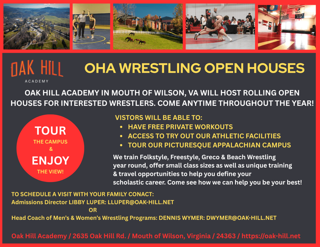 As a sign of the program’s growth, Oak Hill Academy is hosting a wrestling camp this summer. It’s a perfect chance to train with our coaching staff, develop skills, and experience life as an Oak Hill student athlete.